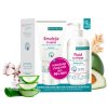 Emulzia na starostlivosť o veľmi suchú pokožku so sklonom k atopii 150ml: Obsahuje prírodné zložky známe svojím blahodarným účinkom pri atopickej dermatitíde: bambucké maslo, olej z bavlny, pupalky, avokáda a pšeničných klíčkov, pantenol, extrakt z aloe vera. Tieto zložky hĺbkovo hydratujú pokožku, podporujú obnovu kožnej bariéry a upokojujú podráždenie.
